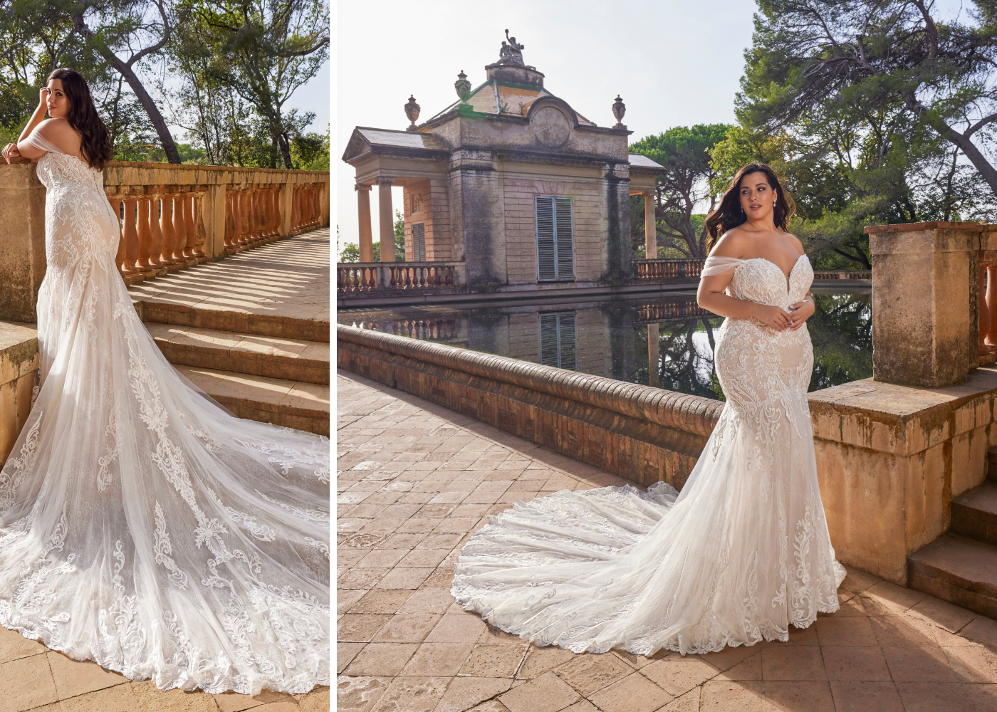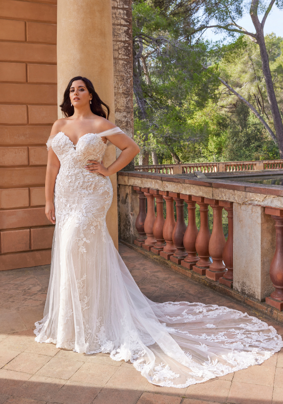Sweet and sultry... EVANGELINE x Édition is to die for! We can't get enough of her floral lace, detachable off-shoulder straps, and that signature ÉLYSÉE sculpted train.