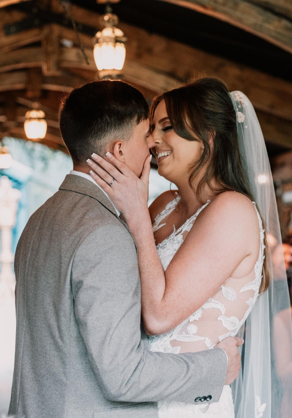 "We met in the military as we did the same training together. I remember the first thing I noticed about him was his smile - he had gorgeous, white teeth - and I knew I fancied him from the off. He was quite shy, not like the typical men I'd seen in the past, he wasn't obnoxious or arrogant, just very polite and kind. I invited him up to my hometown for a night out and when the drinks started flowing, I made the first move, so don't believe that it's always got to be the man that does so! Due to us working together, we spent most days together flirting in the classroom hoping nobody would notice, and we dated in secret. We soon found out everyone knew as it was so obvious - and it started from there! We got engaged 2 years later at a luxury shepherd's hut in Somerset, just the two of us out in the wilderness. I had no makeup on and I was in pyjamas, but it was perfect, fast forward another 2 years and we are now married! We are the same height and I always felt conscious of being a tall woman at 5ft10; I always thought I'd be with someone taller than me and that's what I wanted. But Robert makes me feel confident in my own skin, I wear heels and sometimes I'm taller than him, but I've come to realise that's okay. He's kind, caring and thoughtful, and small things like that don't matter when you've found the one."