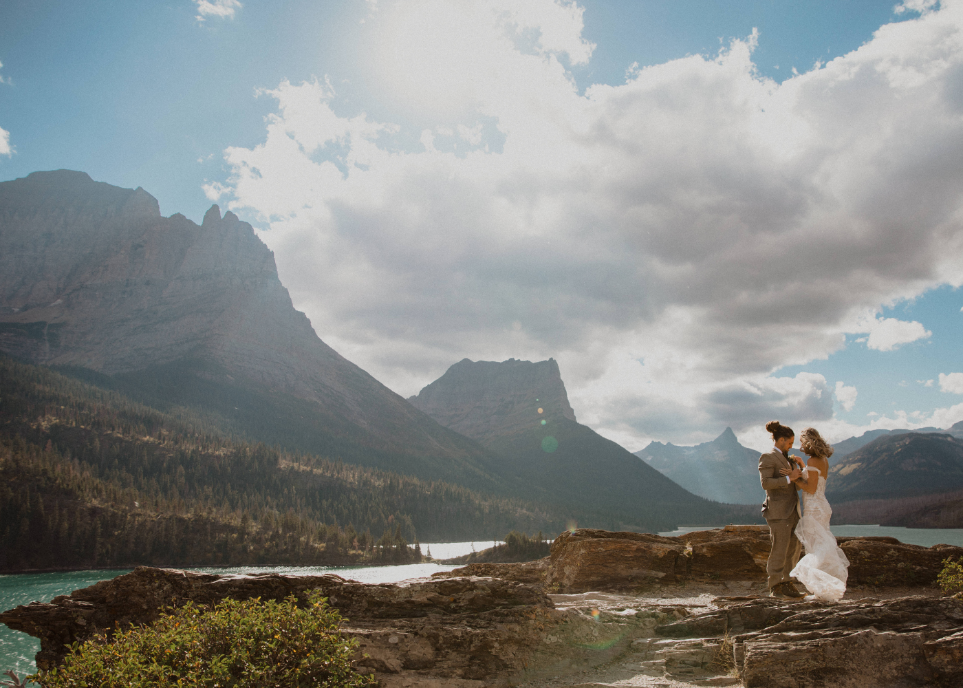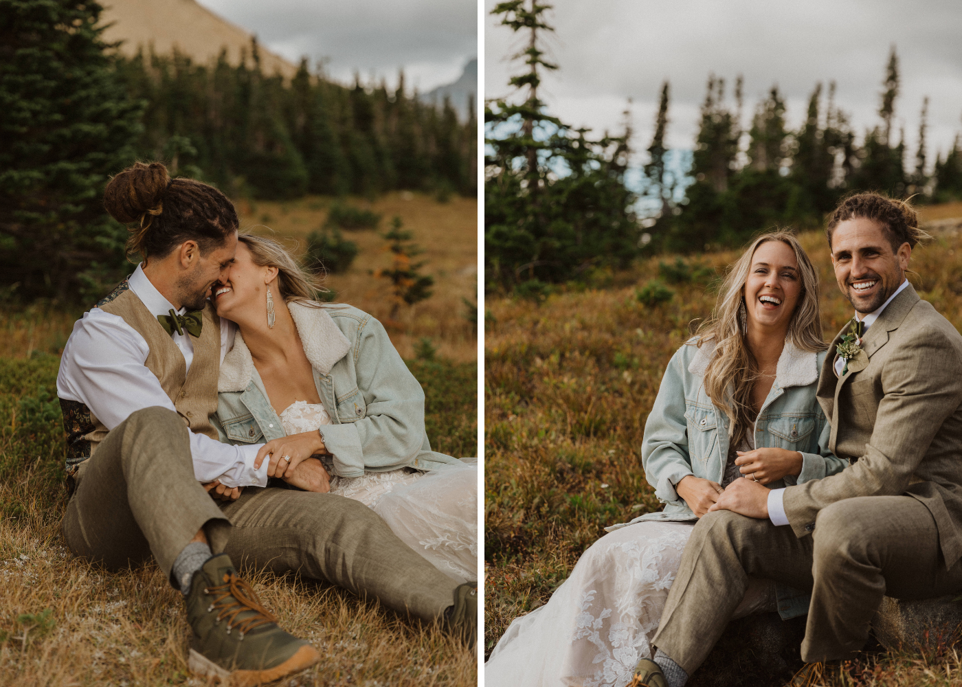 "We will never forget the moments of running through the scenic park to get some of the most incredible shots for photos. I loved spending the day exploring through each part of the location and appreciating nature. Sprinting through the forest and across mountaintops with 40+ mph winds, holding Keaton’s hand with one hand and the bottom of my dress in the other, I can’t tell you how many times throughout the day I said, 'Thank goodness this wedding dress is so comfortable!'”