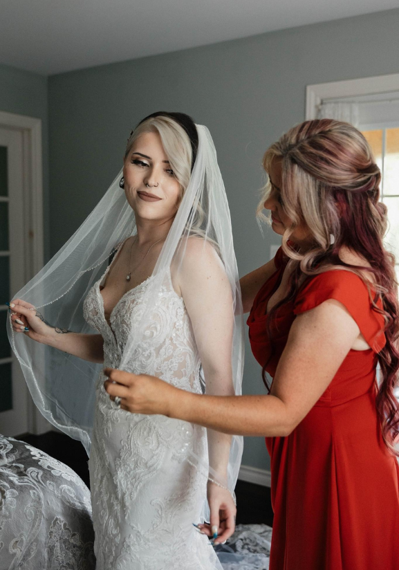"My husband Kyle and I met through mutual friends at a house gathering 4.5 years ago. He was the shy guy and didn’t say much. We were both hoping we would see each other at the next one, but never spoke about it. One night, he kept trying to spark conversation with me. The guy who didn’t say much. I went to my sister and my friends and told them I think that guy kind of likes me. They said, 'Oh him? He’s just a really nice guy!' A couple weeks later, I went to my sister's house for the next gathering with friends, and Kyle was there. We both were the only ones in the house for a second when everyone was outside, and he looked at me and hinted to follow. We went upstairs, he grabbed me and kissed me. We’ve been together ever since. We’ve had a true connection right from the first time we laid eyes on each other."
