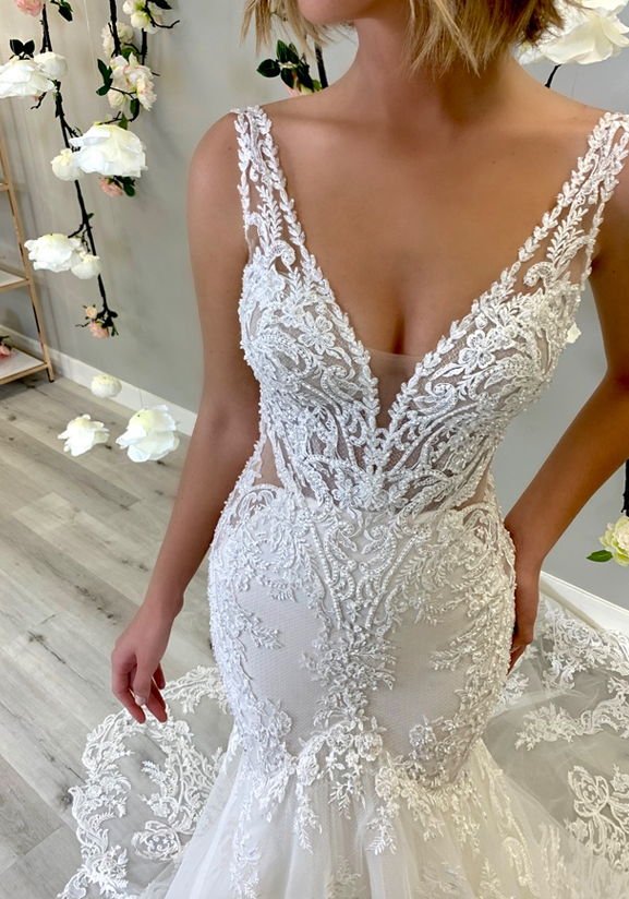 If this is still too bold for you, why not discuss lining options with your Enzoani retailer for an even more subtle lace look?