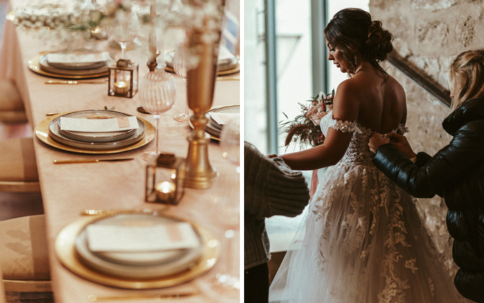 Did someone say rustic boho glam?! WOW. This styled shoot with Enzoani retailer Goldie's Bridal and photography by Clique Visuals has it all! We’re talking wooden features, country flowers, a romantic candlelit aisle, and beautiful gold table décor. All tied together with our dreamy NATSUKO gown from the 2021 Blue by Enzoani collection.
