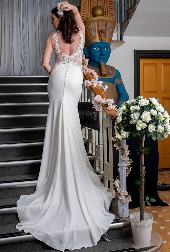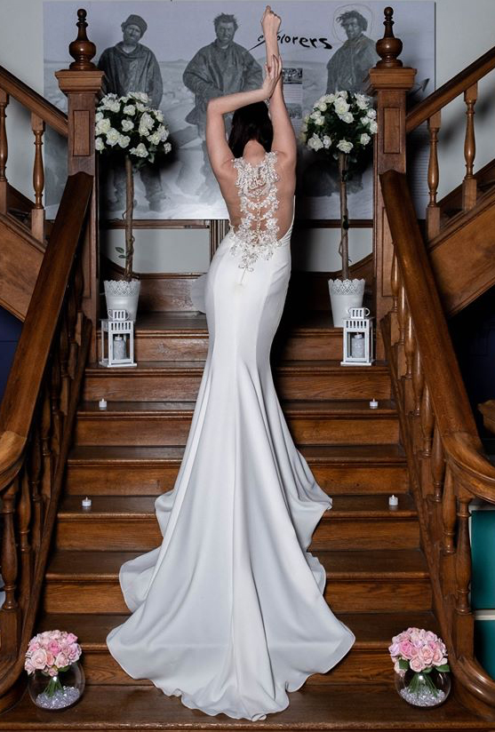 The BT20-19 gown is a beauty with an amazing low scoop back and floating column skirt which complements the figure beautifully. Perfect for a bright summer or destination wedding! Which destination are you dreaming of...?