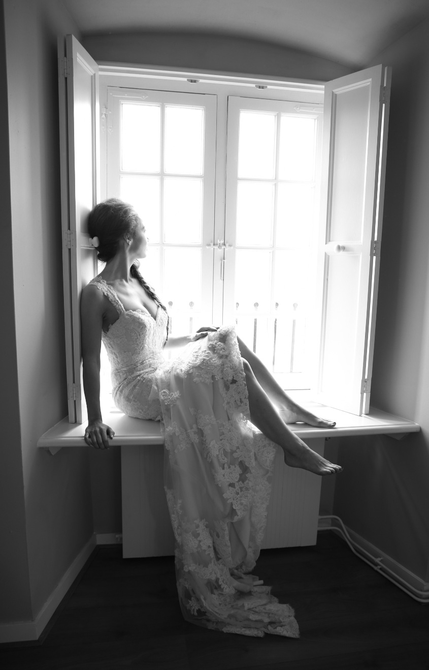 "At last it’s the big day, the day that the couple had been looking forward to for so long. The 'healthy tension' is palpable for our lovely bride Rox: 'How will the day go? What does he think of my dress?' This anticipation is replaced by pleasant jitters as hair stylist Glennie is busy with the bride’s hairstyle. Makeup artist Jennifer brings out the natural beauty of the bride even more. During this relaxed preparation, there is a lot of laughter, and Rox already shines. It was ideal for me as a photographer!"