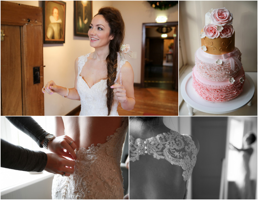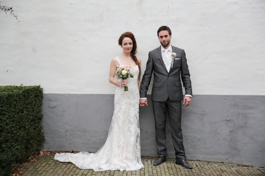 "Lace details, tiny beads, and a seductive open back: The dazzling bridal gown Inaru from the 2016 Blue by Enzoani collection fits perfectly with the Vintage Pastel Gold theme - modern, yet with a classic twist. It fits perfectly on Rox's body, which directly helps for getting the best images. Meanwhile, groom Merijn is also almost ready. The anticipation builds...how will the first look go?"