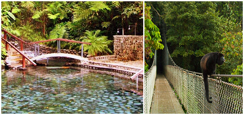 Enjoy a walking tour of the Arenal Hanging Bridges in the morning. Set in 250 hectares of primary forest, there are 15 bridges from 5-100m long covering a 3km circuit from which to enjoy the forest. Visit the Arenal Volcano National Park and experience the relaxing Ecotermales Hot Springs.