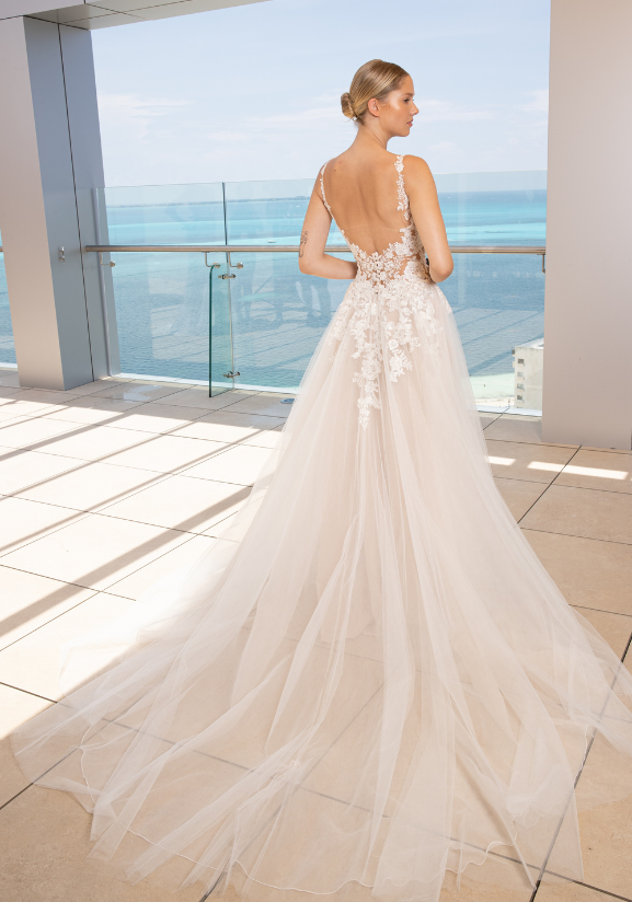 For brides looking for that perfect, dream-wedding fairytale gown... LÉA could be the one! She has a beautiful, soft A-line skirt with delicate lace that cascades down from the bodice... undeniably one of the most romantic gowns from the 2023 collection!