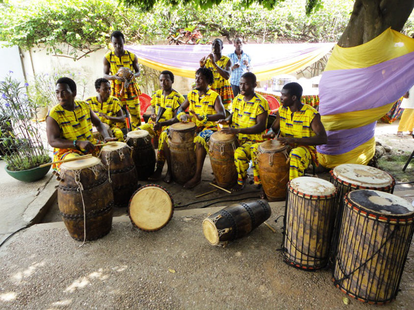• The Ghanaian weddings includes a “knocking” ceremony where the groom, with the father and elder family members, knocks around the bride’s house to announce their relationship intentions.