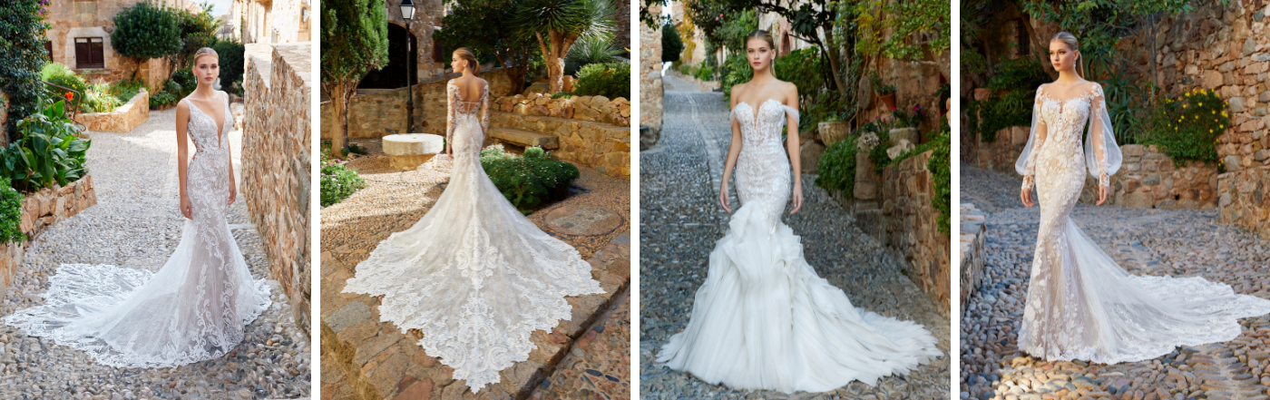 Brimming with romance and elegance, the GIVERNY gown is effortlessly beautiful. She comes with detachable blouson sleeves which not only make this look super romantic, but also very versatile. And we cannot forget about that body-contouring mermaid silhouette, which is an ÉLYSÉE signature.
