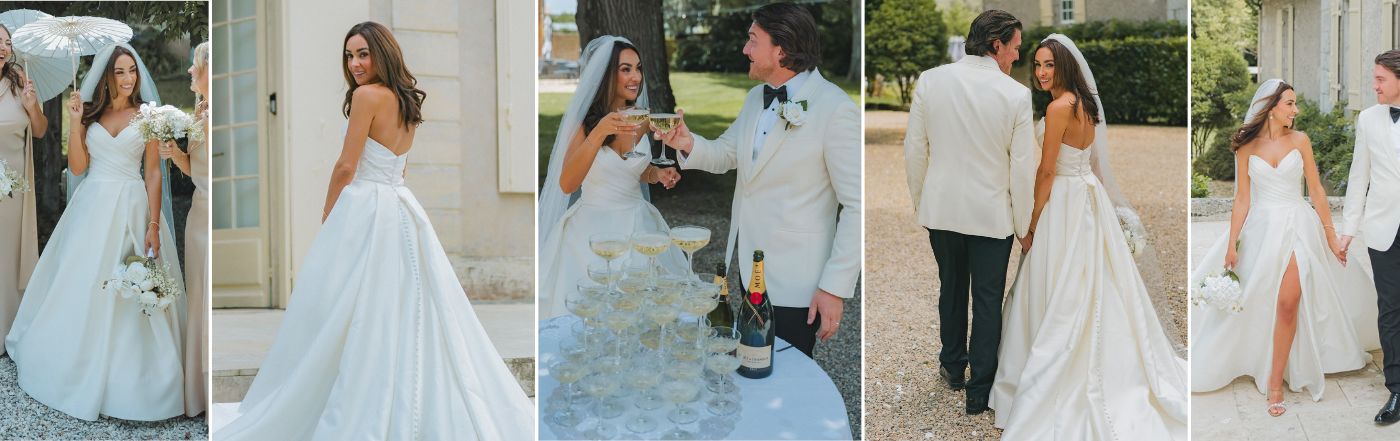 One of the most exciting parts of the journey for me was finding the dress. I knew exactly what I wanted. I was looking for something timeless. I didn’t want to look back on photos in ten or twenty years and feel like I had followed a trend. I wanted something that felt like me. Simple, elegant, and classic. When I found the Delancey gown, everything clicked. The silhouette was incredibly flattering. It hugged in all the right places but still moved beautifully. The slit added a modern twist without taking away from the timeless feel. One of my favourite features was the button-down back that ran the full length. It added such a delicate, vintage-inspired detail that felt subtle but special.