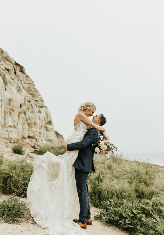 "I had an idea of what kind of dress I wanted just by browsing online. I thought I wanted something plain, with no straps, no lace, no beading. I decided to try on every style of dress, and I am so happy I did. As soon as I put on ANAÏS, I knew I needed it. I felt sexy, confident, and knew I wanted to marry my best friend in this dress."