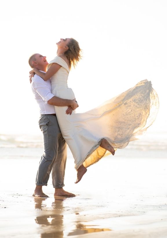 "Grant and I met in the more common arena nowadays of working together, and the friendship was easy and uncomplicated, especially as we were both involved in other relationships. Dating wasn’t an option or consideration, but what did grow was a deep respect for each other and a trust as a result of relying on each other and our teams to have each other’s backs. Looking back, I enjoyed his dynamic, easy-going personality. Fast-forward nine years, and I’m his wife. What an incredible journey of discovery and growth but a depth of understanding between us that I never thought possible. We still work together which I love, as we plan and strategise, but I couldn’t imagine it any differently. We have been given a second chance and we are loving doing life together."