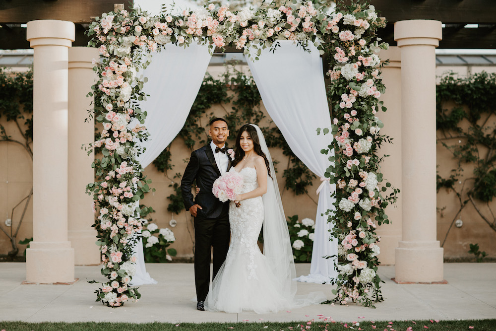 Denise and Ronny wed in a romantic Southern California wedding in summer 2019. With blush pink tones and rose gold accents, there is a sense of closeness and intimacy at their wedding. See which Blue by Enzoani gown Denise picked by reading below!