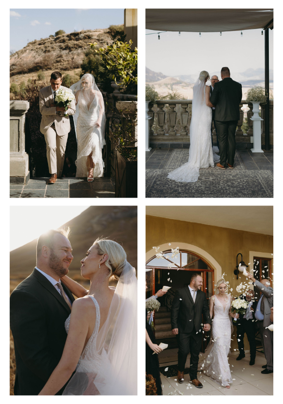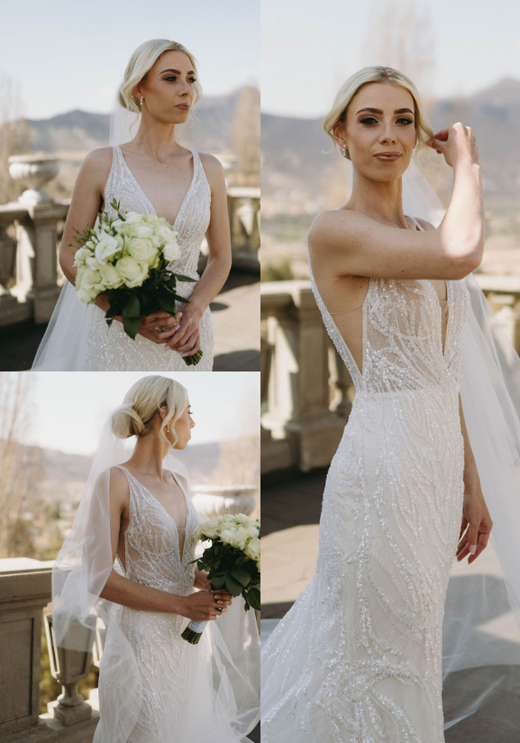 "Before we got engaged, I saw the Silvia dress online and fell in love, so when the time came to try on dresses, I knew what I wanted; so I tried the Silvia and it was even better on than I ever thought it would be, all the detail, the open back the craft of this dress was amazing, it was everything and more."