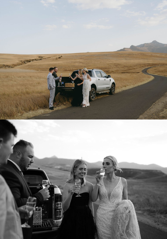 "Our wedding planner packed us a picnic basket, so that when we went to take our wedding pictures, we had something to eat, and my maid of honour and her husband came with us, so after we took the photos, we popped the champagne and celebrated being married just the 4 of us, and we took the moment in."