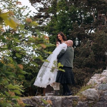 Emma and Alan tie the knot in the historic village of Carrbridge in the heart of the Scottish Highlands
