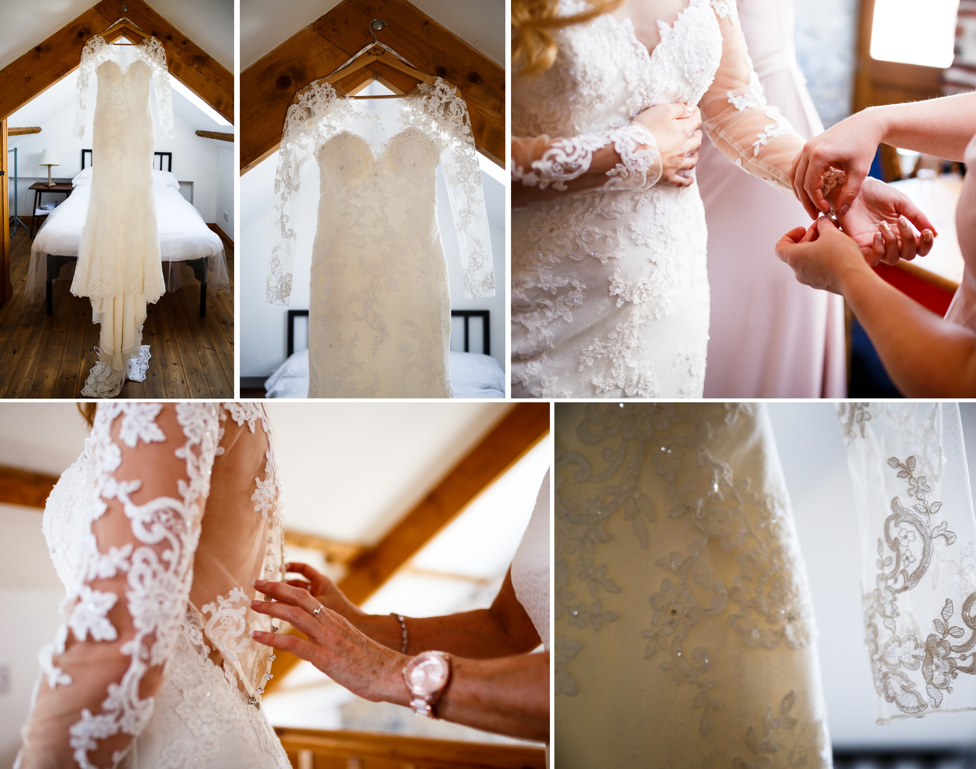 “I loved how the lace motifs looked natural on the skin and the low illusion back. Being a seamstress, I altered the dress myself, added some extra motifs across my collarbone and changed the buttons for more sparkly ones! I also made my veil.”