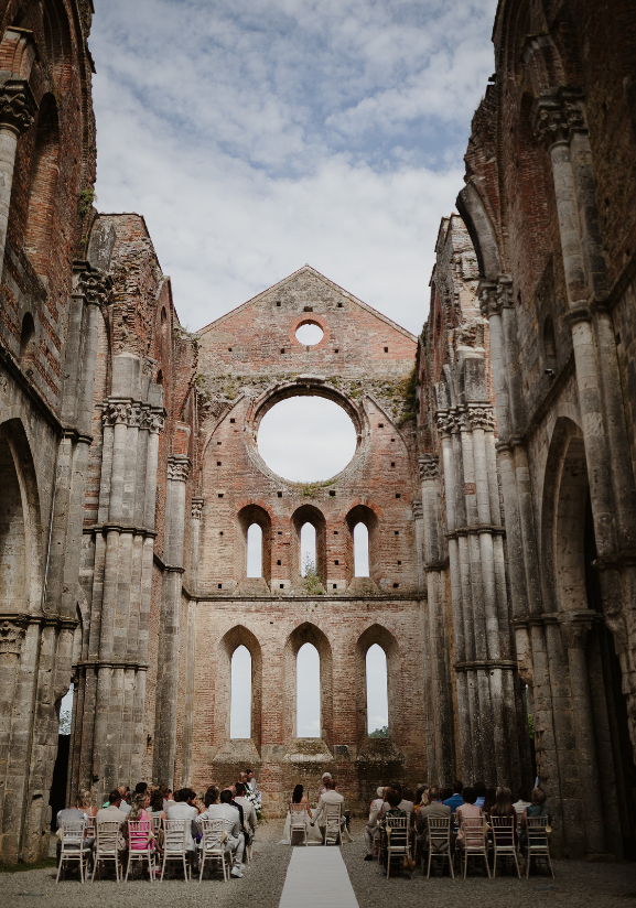 "The special moment when I put on my wedding dress. The unforgettable moment I walked into the beautiful Abbey of San Galgano in my father’s arm. Our little girls in their tiny wedding dresses."