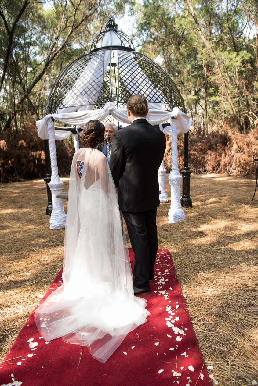 1. Kyle and I both decided that instead of incorporating religion into our wedding, we would make it more sentimental and add personal touches that no one had ever done, but would also mean something to us. So I had a cape made with Kyle’s family Scottish coat of arms sewn on, and this was placed over my shoulders by Kyle before the ceremony began with its usual introductions, vows and rings. It signified the placement I would now take on as a Mundell under his protection and the importance of our relationship uniting as one.