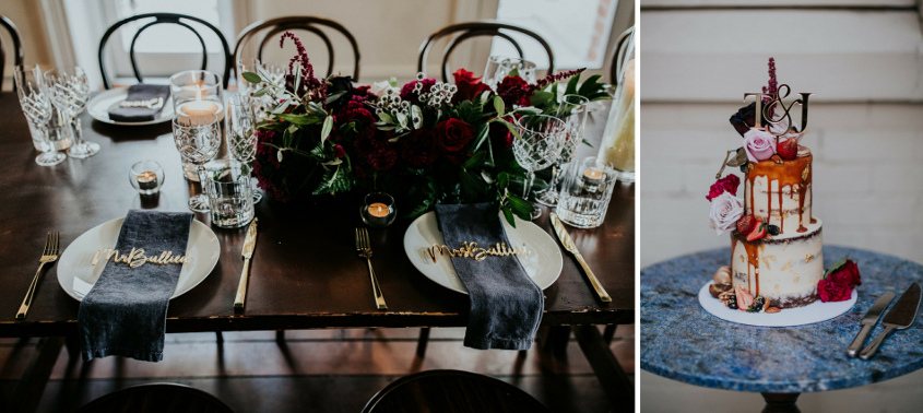 Gold name tags on table: Sketch & Etch