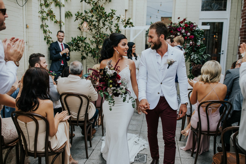 Elegance with all the right details sums up this gorgeous Australian wedding at the Guildhall Fremantle. With rich reds and deep bold blues, we love how this wedding can feel timeless. #EnzoaniRealBride Tash picks the JURI Gown from Enzoani's Blue collection for her big day - the perfect choice as it emphasizes her classic and effortless style.