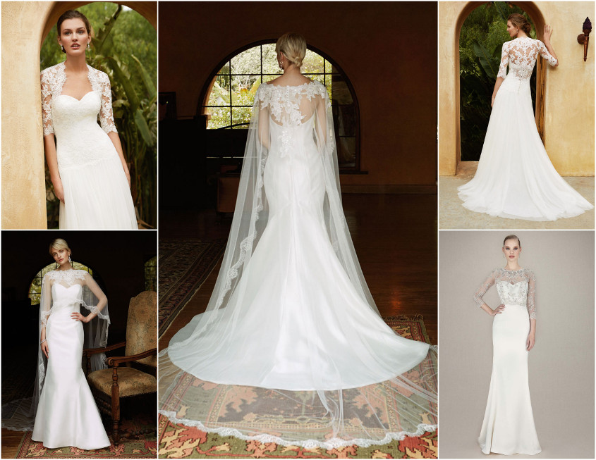 Looking for an elegant, dramatic gown with just the right amount of coverage for your ceremony? Try a dress with a delicate lace-sleeved jacket like BT16-01 from the 2016 Beautiful collection, or a dress with a stunning beaded jacket like Kacey from the 2016 Enzoani collection. These would be just as perfect for an indoor chapel ceremony or outdoor winter wedding as BT16-29, featuring a breathtaking, ethereal tulle cape to gorgeously trail down the aisle.