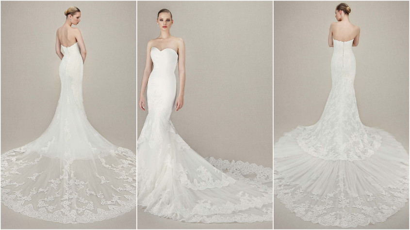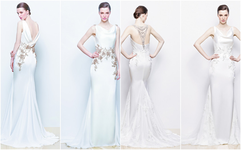 Pictured Above (Left to Right): Inara, Enzoani collection, back and front view; Ivana, Enzoani collection, back and front view