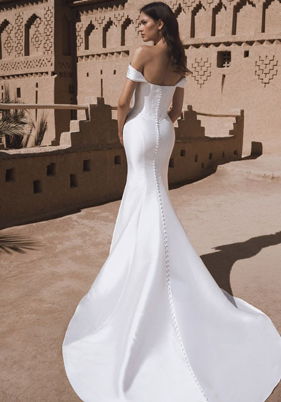 But the detail doesn’t stop there! The train is finished with covered buttons, creating a sense of ceremony and enduring elegance as you move through your day. From the walk down the aisle to the dance floor, TOVA promises a moment that will echo in your memories.