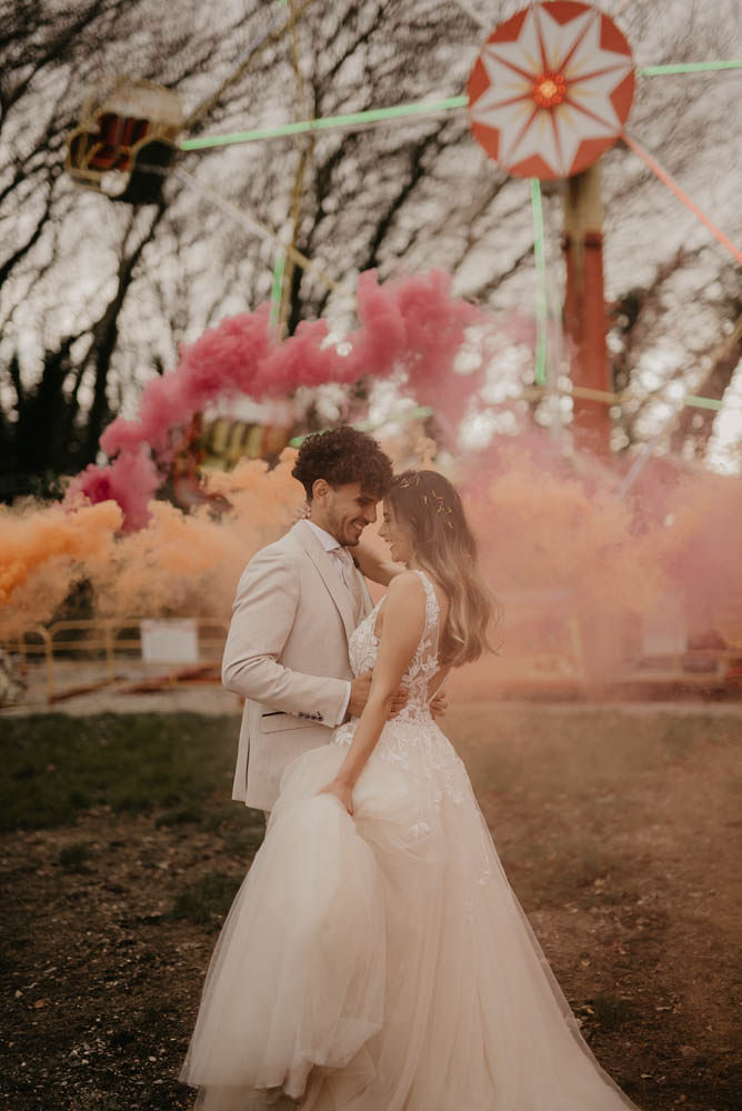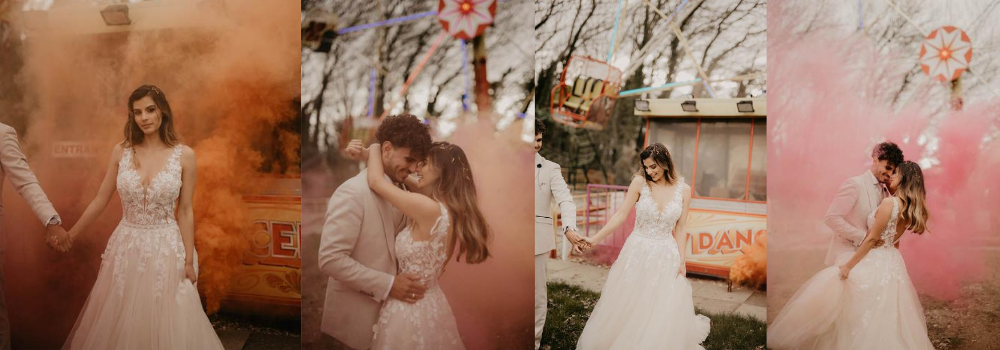 Ice cream, games, rides, and one beautiful Blue by Enzoani dress -- this is something out of a dream. Romantic and full of warmth, this styled shoot is giving us all the feels!
