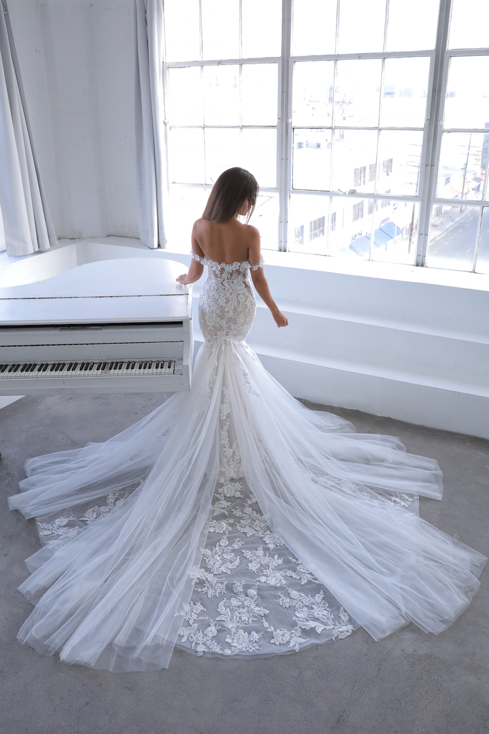 • Your bridal consultant will be pulling dresses from what you've described and showed her through your inspo photos. If you're able to have an in-store appointment, you will start trying them on and narrowing down what you like and dislike. Maybe you'll love this silhouette, or elements of how this gown looks on you... have fun with it!