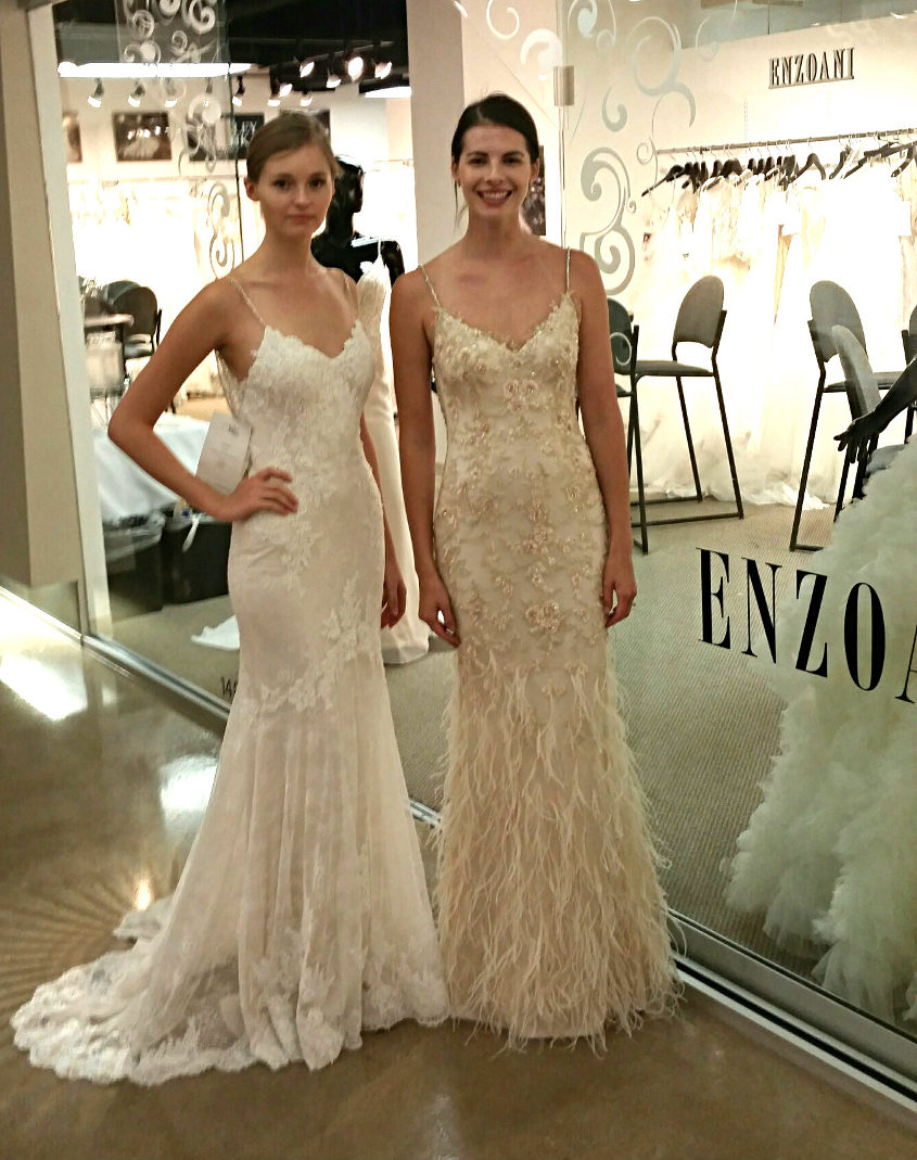 Before heading to Atlanta and New York for the final bridal markets of the season, Enzoani stopped by Dallas to bring all the latest and greatest designs to our Southern retailers. Popular styles included January (above left) and Leonie (above right) from the 2017 Blue by Enzoani and Enzoani collections.