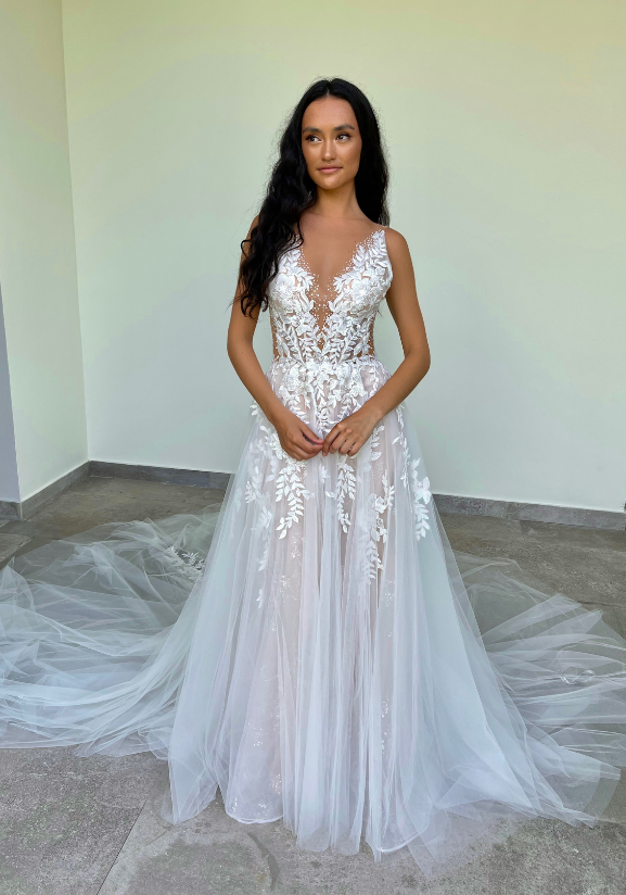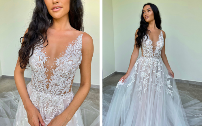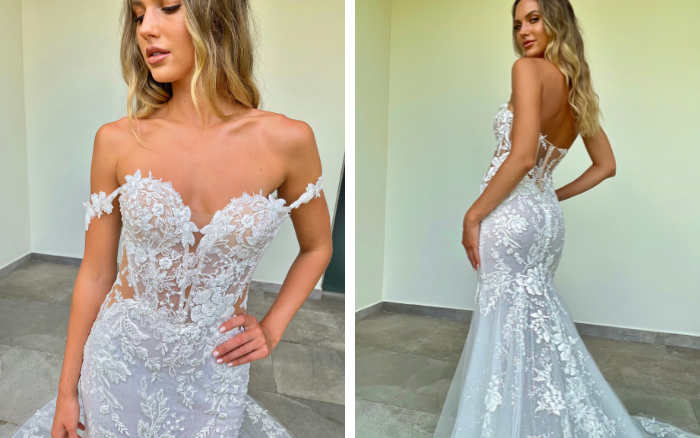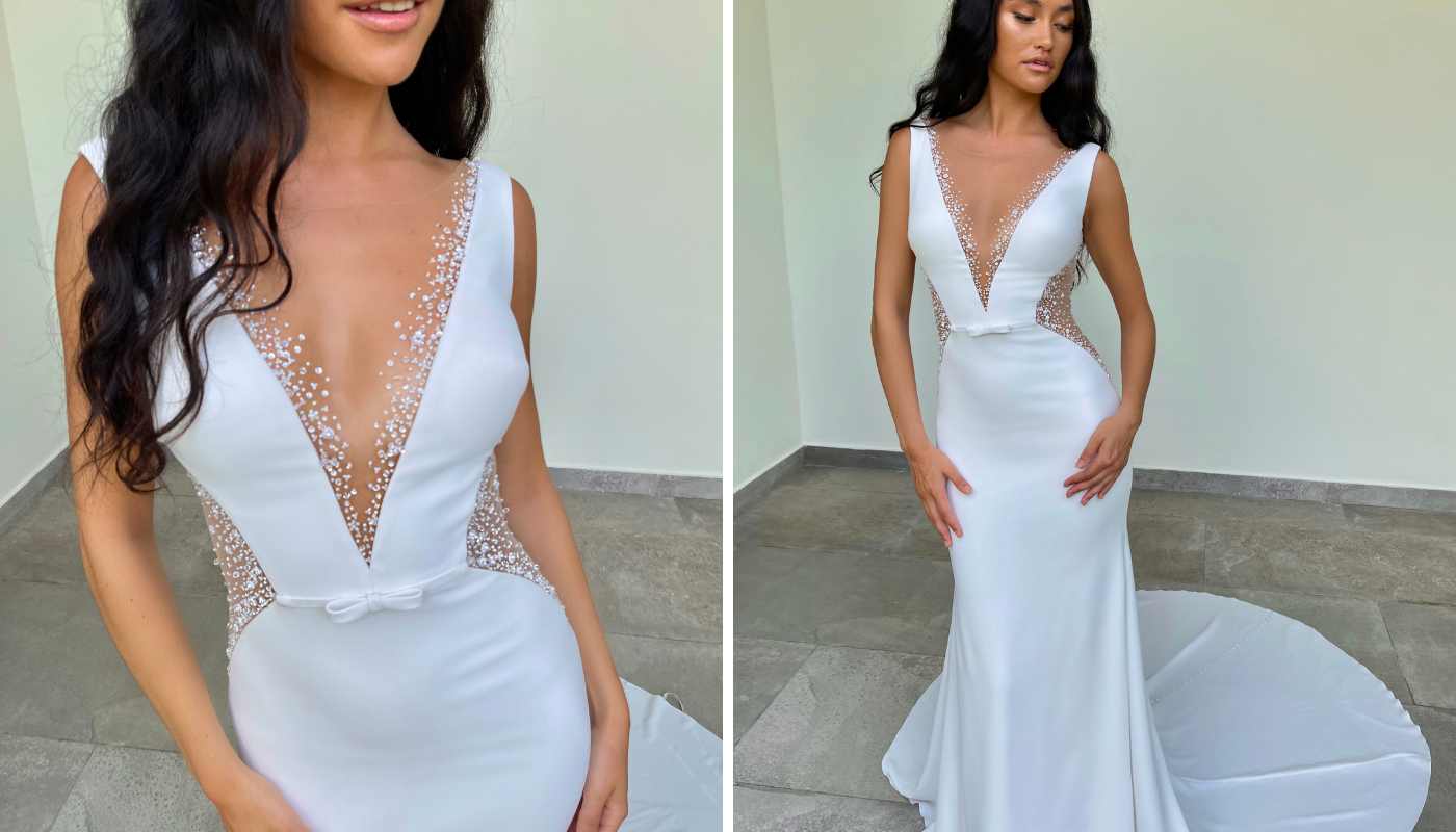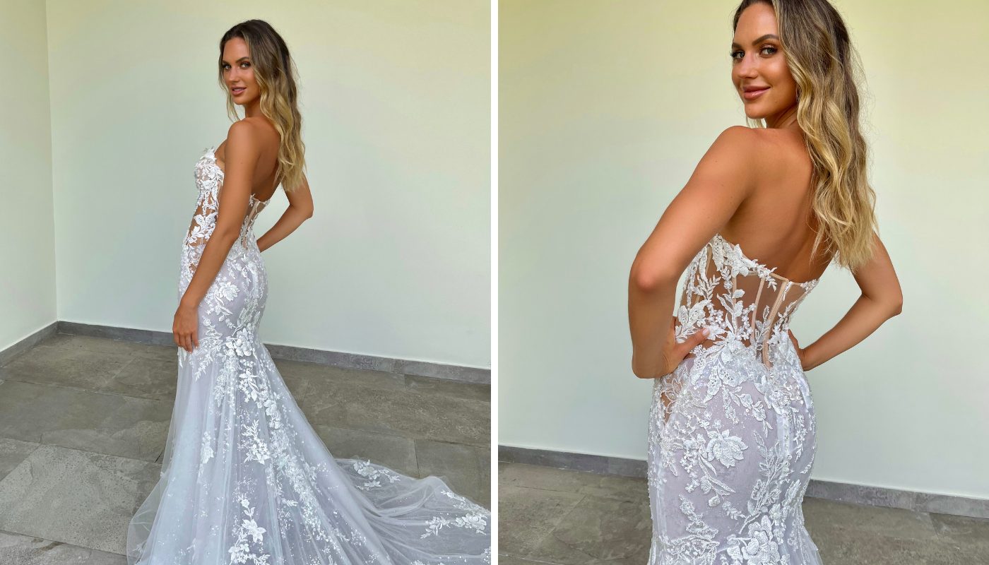 "Enzoani is the most glamorous collection this season! The trains are insanely gorgeous and the intricate details are everything. We love Enzoani for the 360 sexy details and this season did not dissapoint."