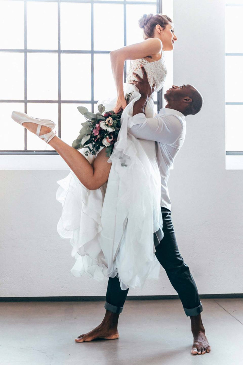 Bridal meets ballet for beautiful results in this styled photo shoot by photography team Herrundfrau.W featuring our Leighton bodysuit and Leann skirt from the 2017 Enzoani collection and borrowed from authorized Enzoani retailer Modeatelier Elena Victoria. The shoot was published on German wedding blog Hochzeitswahn and featured gorgeous dancers in a bright indoor setting with decorative pops of color. Check out the stunning photos below that'll have you inspired to say, "Shall we dance?"