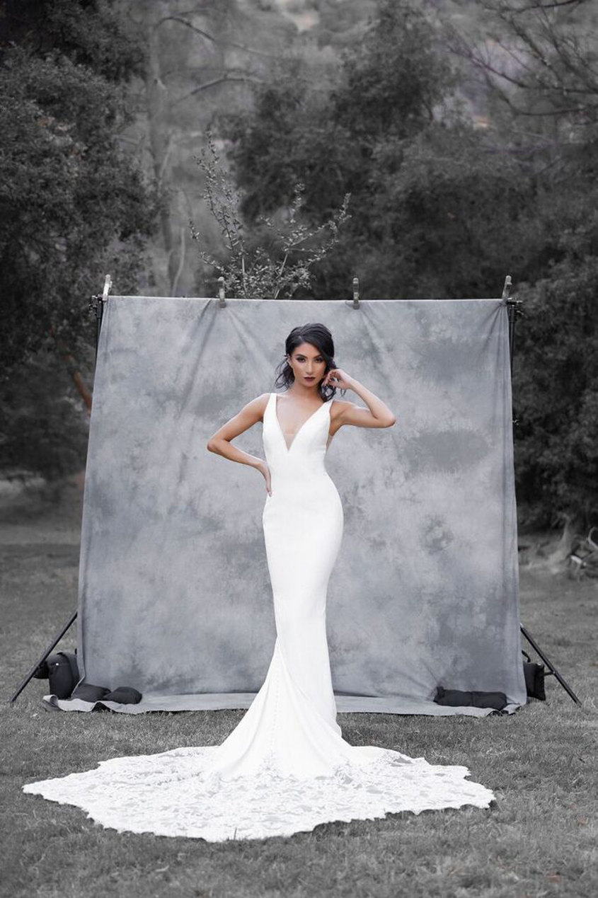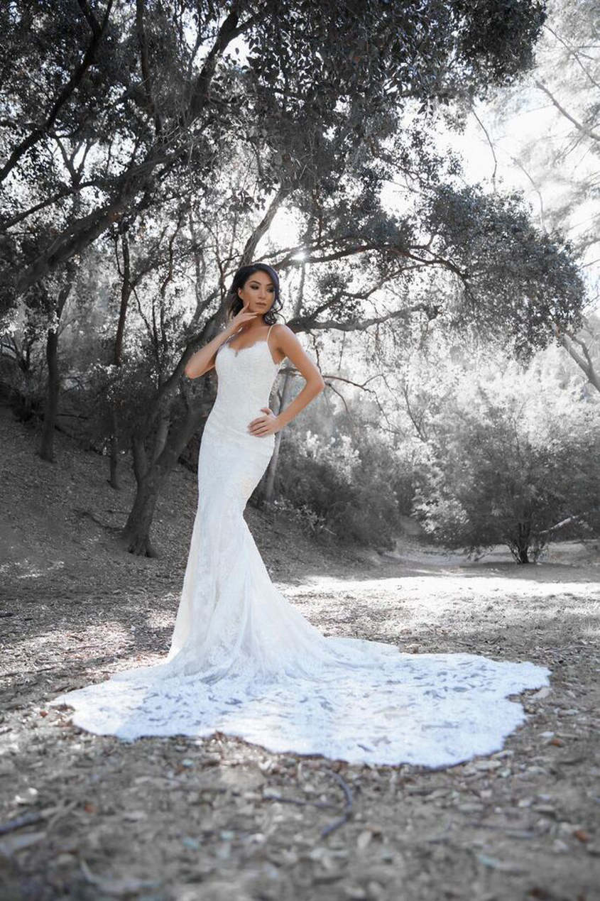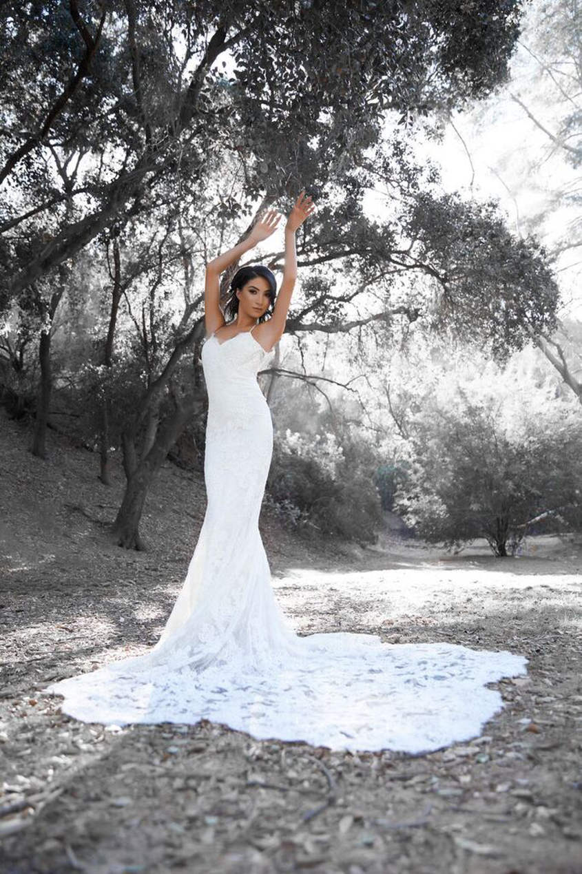 With Photographer Mario Barberio behind the lens, and the talents of hairstylist Christina Karapetian, makeup artist Elizabeth Seropian, and model Shushan Avagyan, this black-and-white themed styled photo shoot was the perfect opportunity to showcase the 'classic romance' of popular bridal gowns from our 2018 Enzoani collection. A wooded forest area made for a gorgeous natural setting to highlight the detailing on each gown. Check out all the photos from the shoot below for a little wedding inspo for your own bridal style, and see the complete 2018 Enzoani collection here.