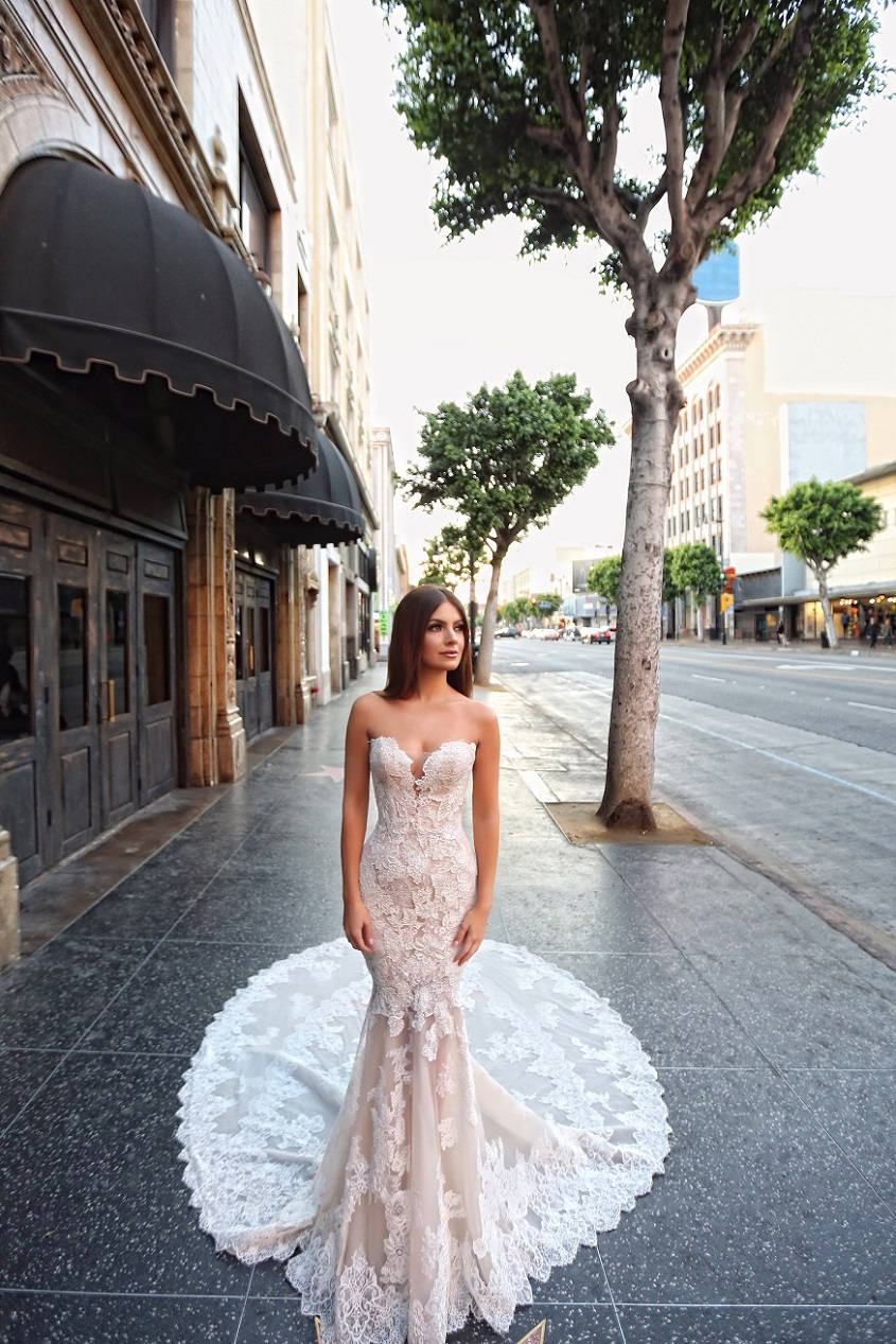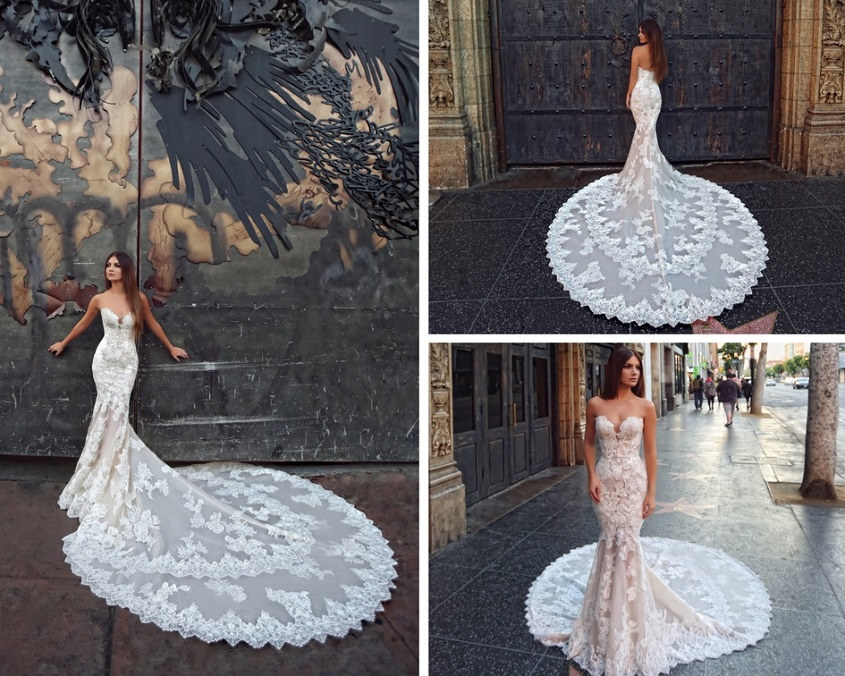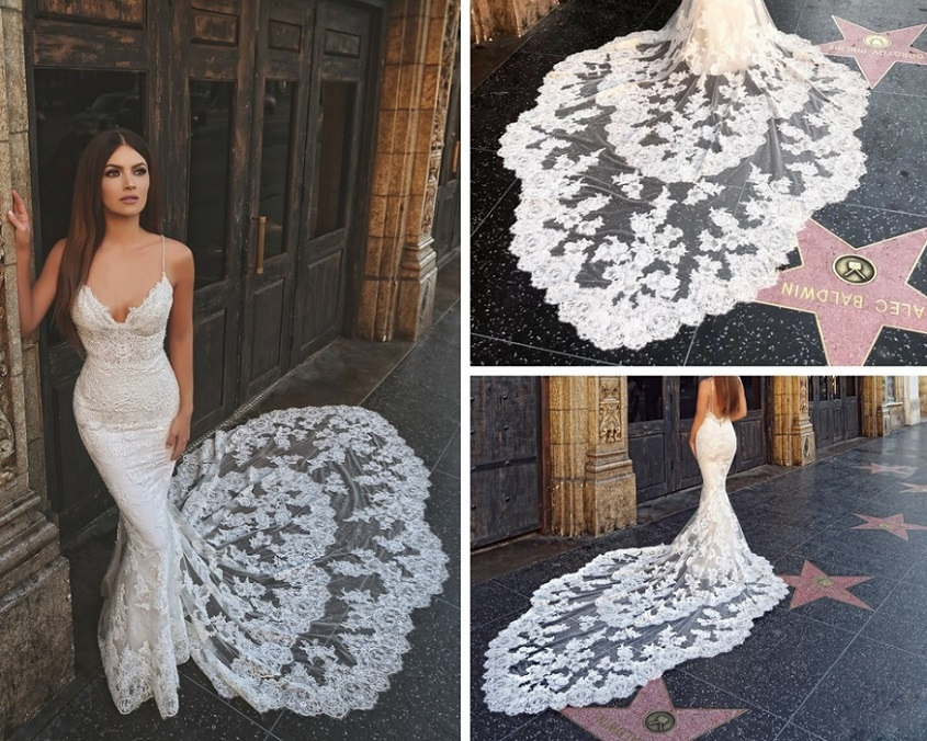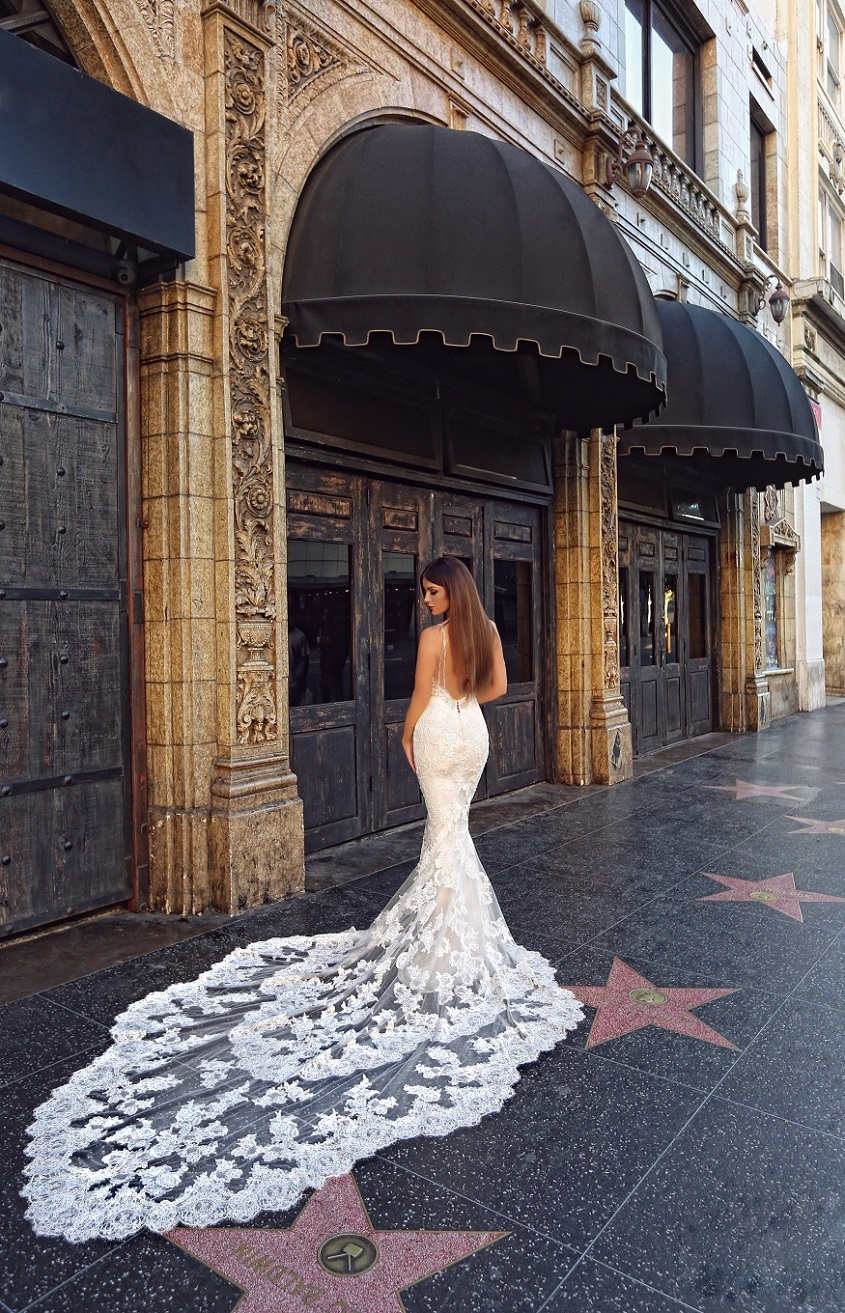Mercedes makes a guest star appearance on the Hollywood Walk of Fame. The lace and tulle train steals the spotlight in this captivating photo.