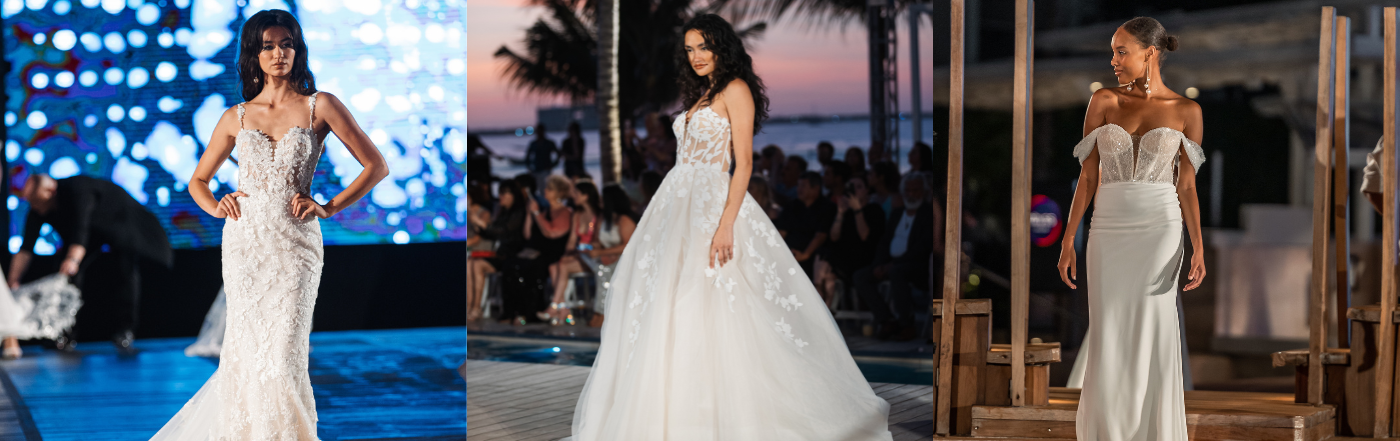 11 August, 2022 We are head over heels over our runway show at our 2022 Fashion Event! With a gorgeous Cancun sunset to set the scene, our fabulous 2023 gowns were revealed. Read more about our glamorous runway featuring all three of our collections that surely got everyone's groove on...