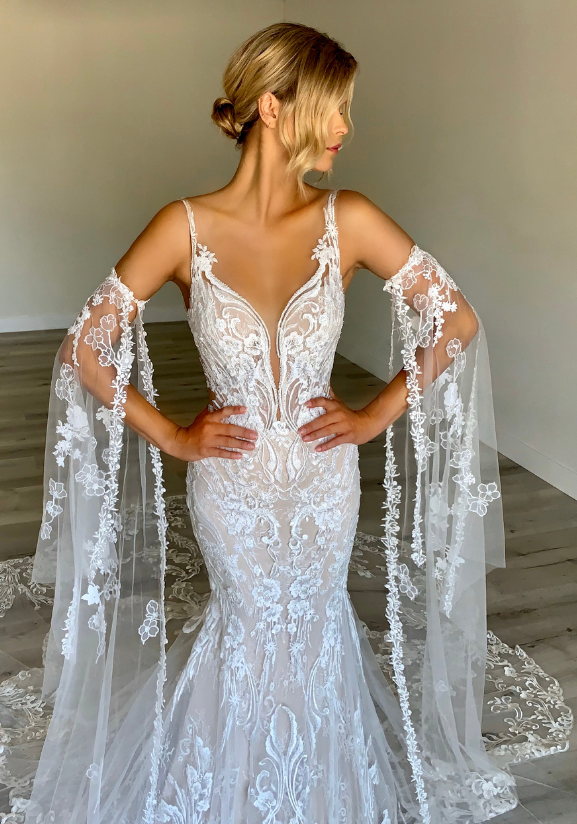 Searching for accessories that are both dramatic and dreamy? The JEANNE sleeves are perfect for adding a flowy, boho -- and breathtaking -- accent to any gown.