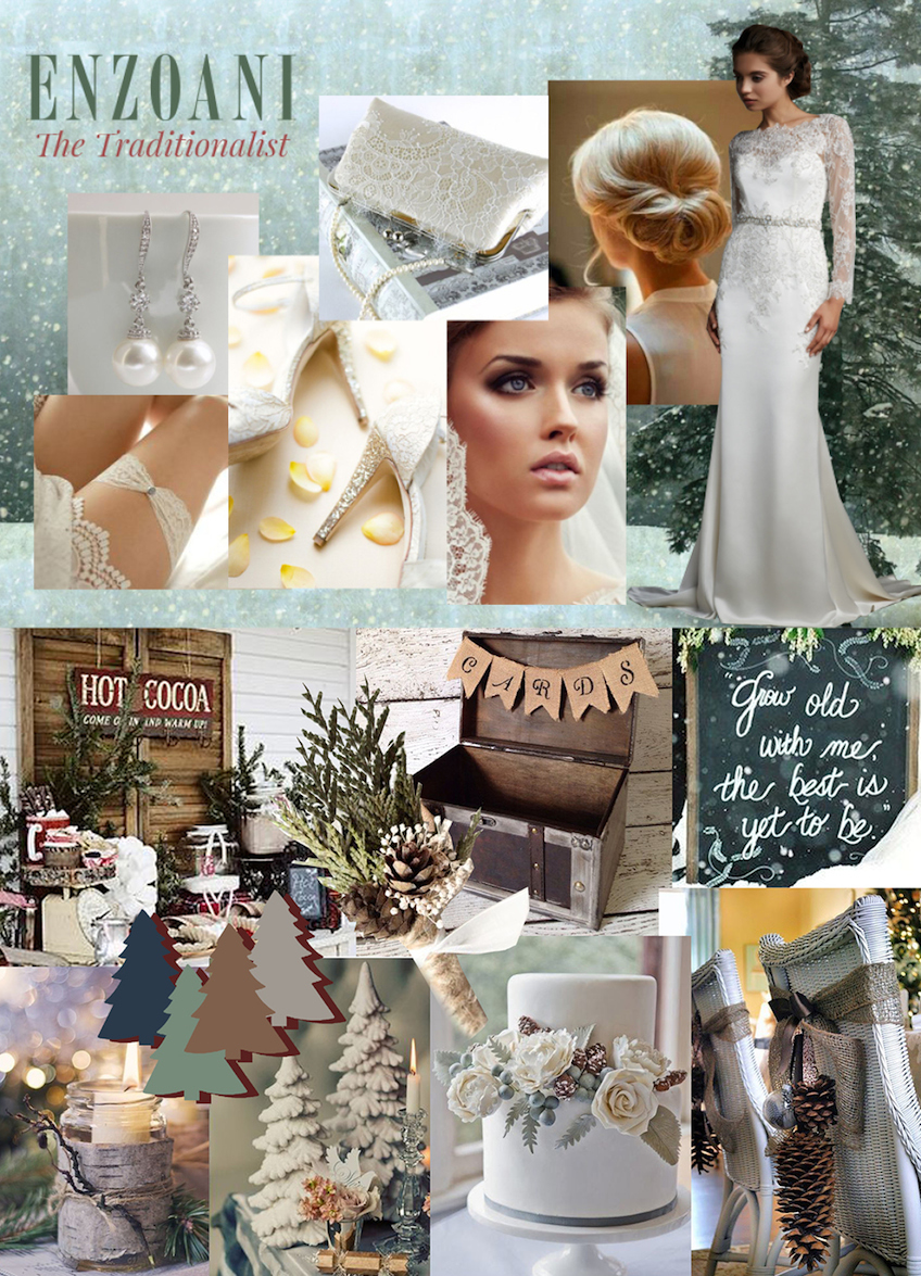 This season, find the perfect Enzoani gown and style to celebrate your winter wedding! Are you traditional, fashion-forward, or all about DIY? Check out the mood boards below for ideas to deck out your wedding this holiday season!