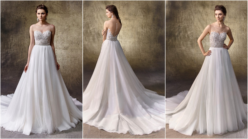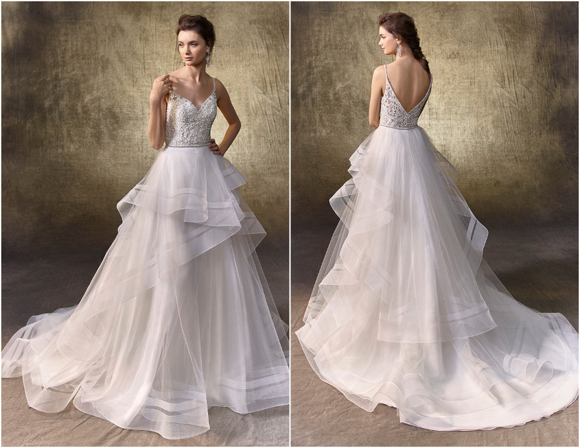 Pictured below: Liv bodysuit with Lidia skirt, a classically romantic tulle and organza A-line style
