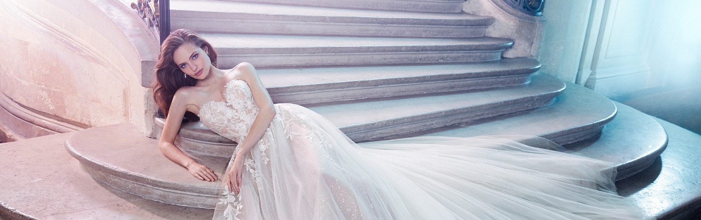The DREAM gown undoubtedly lives up to its name! With an enchanting, strapless bodice delicately embellished with stunning 3D Mikado floral embroidered appliques and Chantilly lace, this A-line weddin