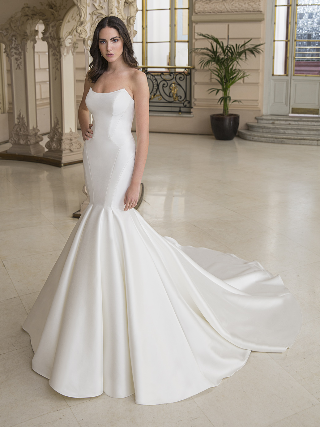 Introducing the breathtaking GALIANA wedding gown from the ethereal Élysée collection. Crafted with luxurious strech mikado in a mesmerizing mermaid silhouette, this dreamy dress is a true masterpie