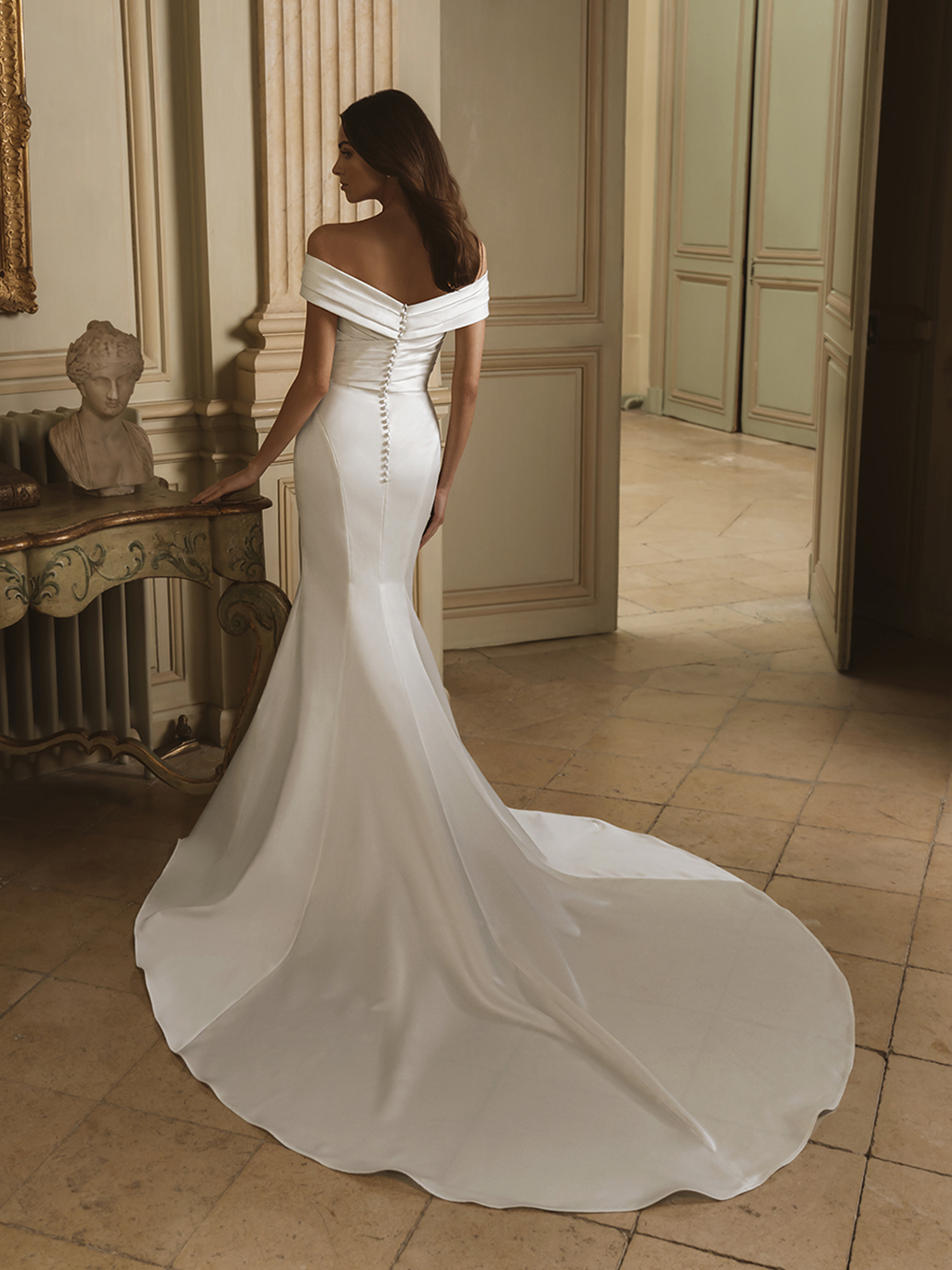 Experience pure enchantment in the GARNET wedding gown from the Élysée collection. This A-line masterpiece features ethereal 3D floral appliques dancing gracefully on satin, embodying Hollywood glam with a modern twist. The semi-sweetheart neckline adds a playful touch, while the high slit and detachable overskirt offer versatility for a bride who loves to make a statement. Channel your inner goddess in this sculptural gown that promises to captivate hearts at every turn.