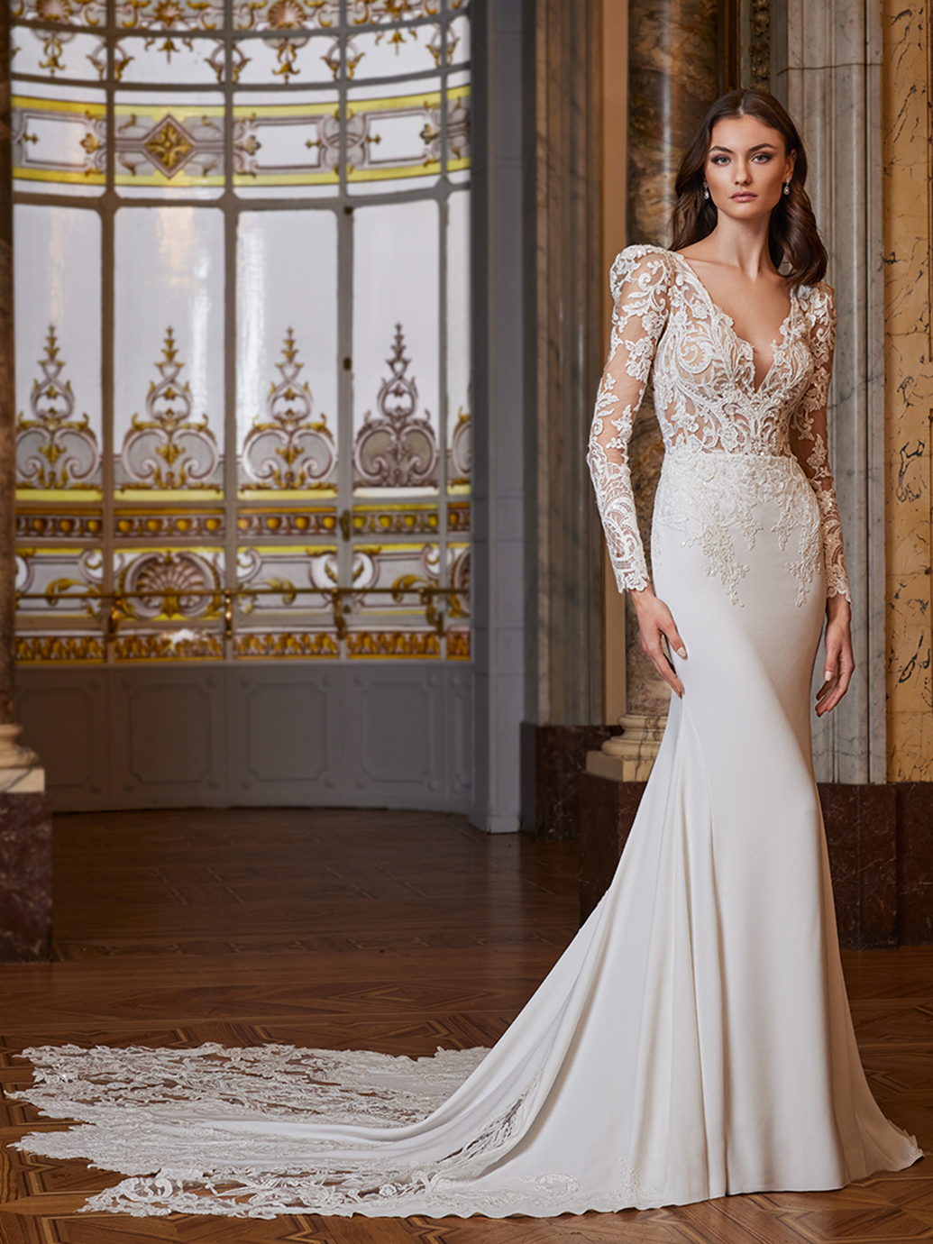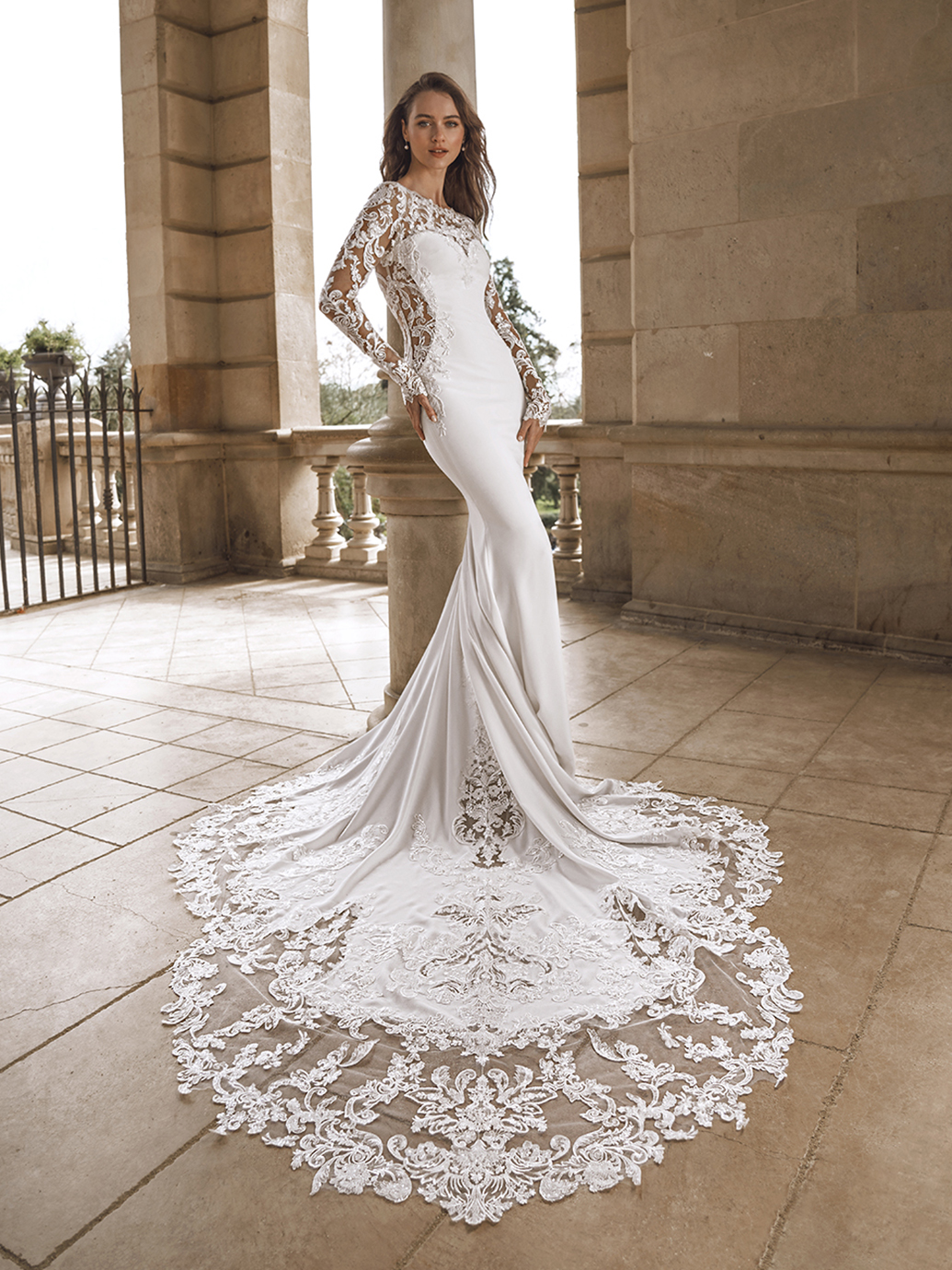 Introducing the stunning FELICIA gown from Privé -- a mesmerizing blend of stretch georgette and tulle, sculpted into a romantic fit & flare silhouette. The high neck adds an ethereal touch, while the intricate back detail shimmers with a playful sparkle, perfect for the vintage-inspired bride.