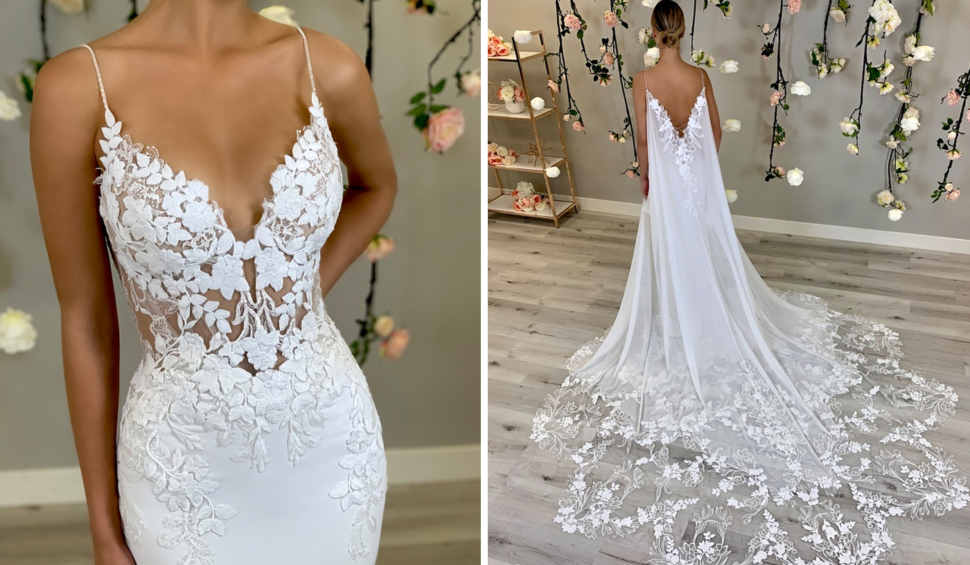 There’s an age-old back and forth about whether a bride should go all out with details on her dress or strip it all down and allow a clean, polished slate to bring out her shine. But here, our thoughts are: why not go big with the intriguing touches on your ensemble? Your guests will be enamored with your look and so interested in ‘all of the little things’ that make its magic. And when you wear a dress as detailed as one of ours, it’s essentially a piece of art - inspired and admiration-worthy.