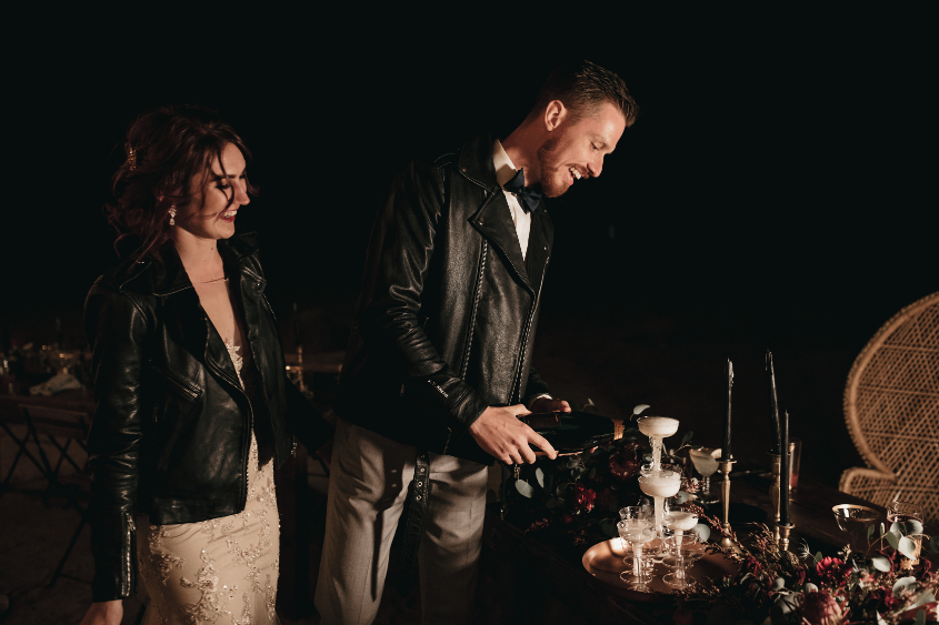 We also decided on me sabering a champagne bottle and him pouring it onto a small champagne tower that we passed out to our parents and wedding party instead of the traditional cake cutting.