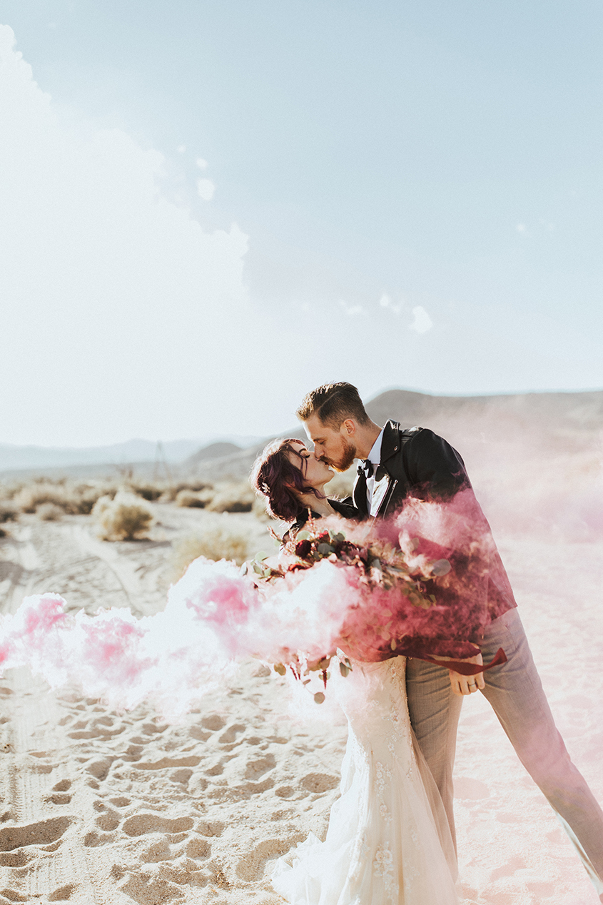 A little indie, a little boho, and a little alternative - you get a gorgeous desert wedding!  Emmy and JD say "I do" with close friends and family celebrating on the coastal deserts of Southern California. We're loving this bride's unique style and approach to her own personalized wedding.