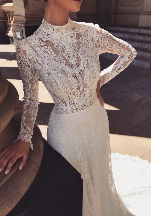 Ladies looking for something a little more unconventional and unique can rely on the 2019 collections for some gorgeous vintage vibes.  The Leonora gown has a high neckline and beautifully intricate, laced long sleeves which are perfect for ‘triangle’ figures and taller brides. This timeless style is balanced with modern illusion embroidered lace and a flirtatious figure-enhancing shape.