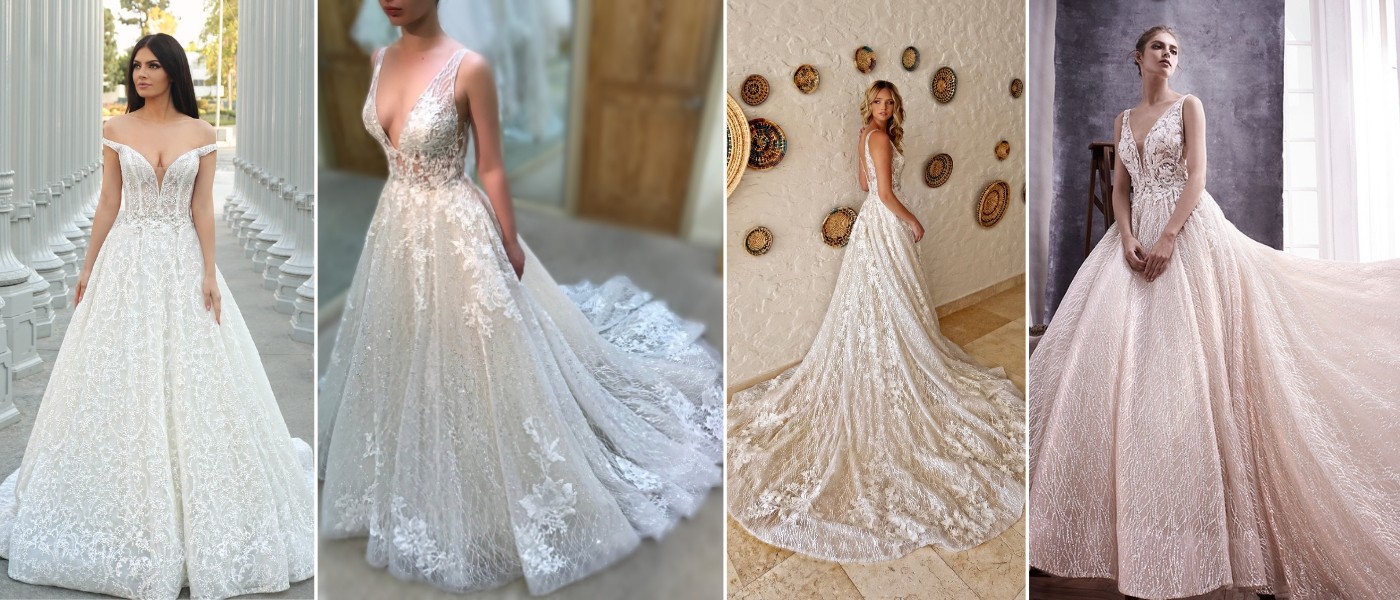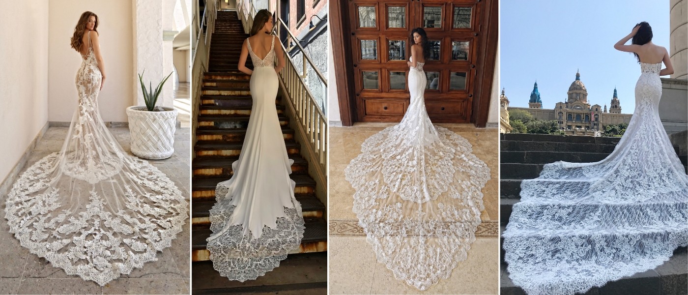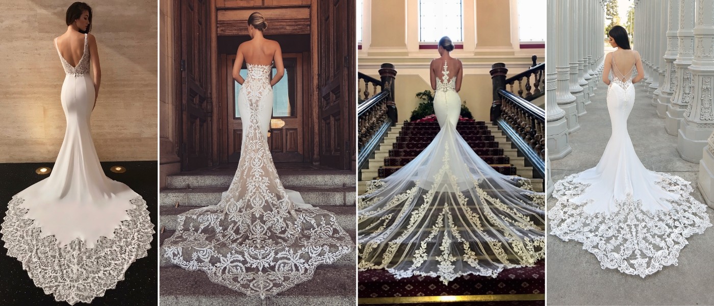 These long cathedral trains appeal to a lot of brides as they tend to suit most figures, so really, all you need to think about is whether or not it will suit your wedding location. If you’re tying the knot in your back garden, then a cathedral train might look a bit over the top and be impractical in a small space. However, if you’re planning on securing a luxurious location with lots of space and a long aisle to walk down – then a statement train is a MUST!  This style of gown will be your wedding photographer's best friend as it looks INCREDIBLE in photos, especially cascading down a grand staircase.