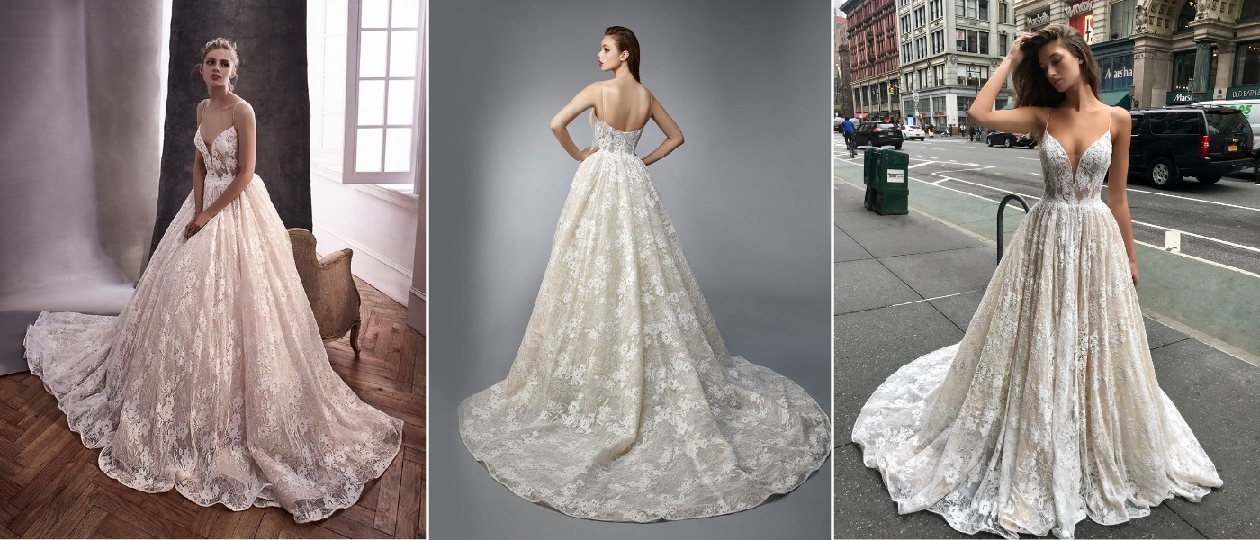 Statement trains continue to strongly influence the Enzoani collections. One of the signature looks of 2019 has been created by combining uniquely designed embroidered laces with elegant, high-quality stretch georgette material and flowing lace trains. Gowns such as Lena, Lainey, Linda, and Luz are extremely figure-flattering and the perfect statement style for an eye-catching wedding photo. Each of these gorgeous Blue by Enzoani gowns has its own unique take on this signature style, which offers the modern bride the option to select the gown that best fits her own personal style. The choice is yours!