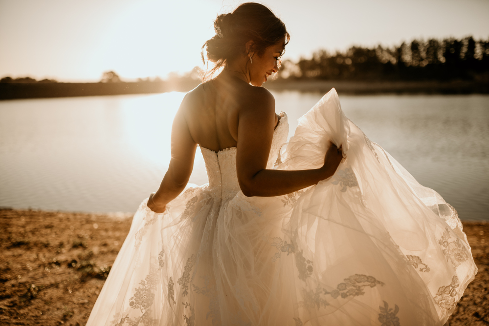 My absolute favorite wedding moment is when it’s just myself and the bride for her bridal portraits. I always suggest at least thirty minutes alone with the bride after she is ready. This way, she relaxes before the ‘I do’s,’ I show her an image on my camera screen, and immediately she feels as beautiful as she looks and cannot wait to walk down the aisle. Secondly, I would have to say I love the couple portraits at sunset. Words cannot describe the new love that’s born on the end of a very special day.